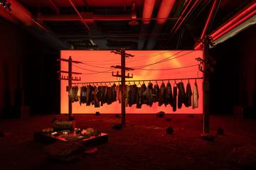 Présentée sous le label STWD, initiales qui désignent la ligne streetwear de Pull&Bear, la collaboration est inspirée du western urbain et du grunge, entre culture urbaine et rurale. Au quatrième étage du musée, la capsule a bénéficié d’une installation conçue par Arnaud Selve, designer multidisciplinaire à l’origine, entre autres, de la scénographie du défilé Chanel printemps-été 2026 de Matthieu Blazy.