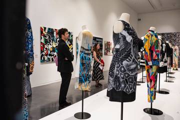 Sur 180 mètres carrés, les toiles des graffeurs JonOne, Futura 2000 ou encore Mambo se confondent avec des imprimés de leurs motifs sur des mannequins à proximité, provoquant un effet trompe-l'oeil entre l'oeuvre d'art et le vêtement.
