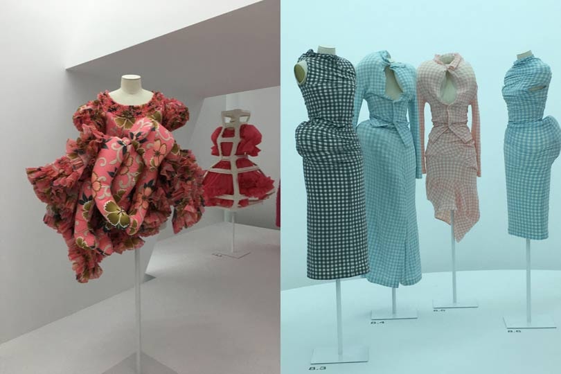 Un monsieur plus âgé s'écarte du mur sur lequel il s’était appuyé, en murmurant : « Je ne sais pas, rien de tout cela ne me plaît beaucoup ...» Sa femme, qui regardait l’installation Body Meets Dress, Dress Meets Body, (Le corps à la rencontre de la robe, la robe à la rencontre du corps) avec une robe de nylon en Vichy bleu et blanc, avec des rembourrages sur le côté, rend aussi son verdict : « ce ne serait pas une partie que je voudrais accentuer », et le suit. Pourquoi ne pas lire la description ? J’avais envie de courir après eux pour leur dire. Rei a juste voulu repenser le sablier comme modèle du corps féminin...