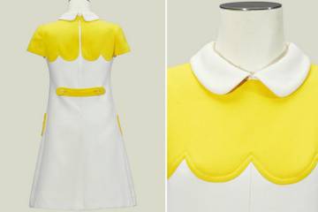 Photos- légendes : Courrèges, robe courte à manches courtes (01), Yves Saint Laurent, ensemble Saharienne (02), Thierry Mugler, robe à fleurs (03), Paco Rabanne, robe courte en aluminium (04), Chloé, robe longue (05), Schiaparelli, collier en rhodoïd (06) © Molly SJ Lowe
