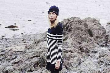 Photos : - Claudie Pierlot x Saint James - Isabelle Allouche (à gauche), DG de Claudie Pierlot et Vanessa Pierrat D.A de la marque - Olympia Campbell pose pour la collection A/H 2015.