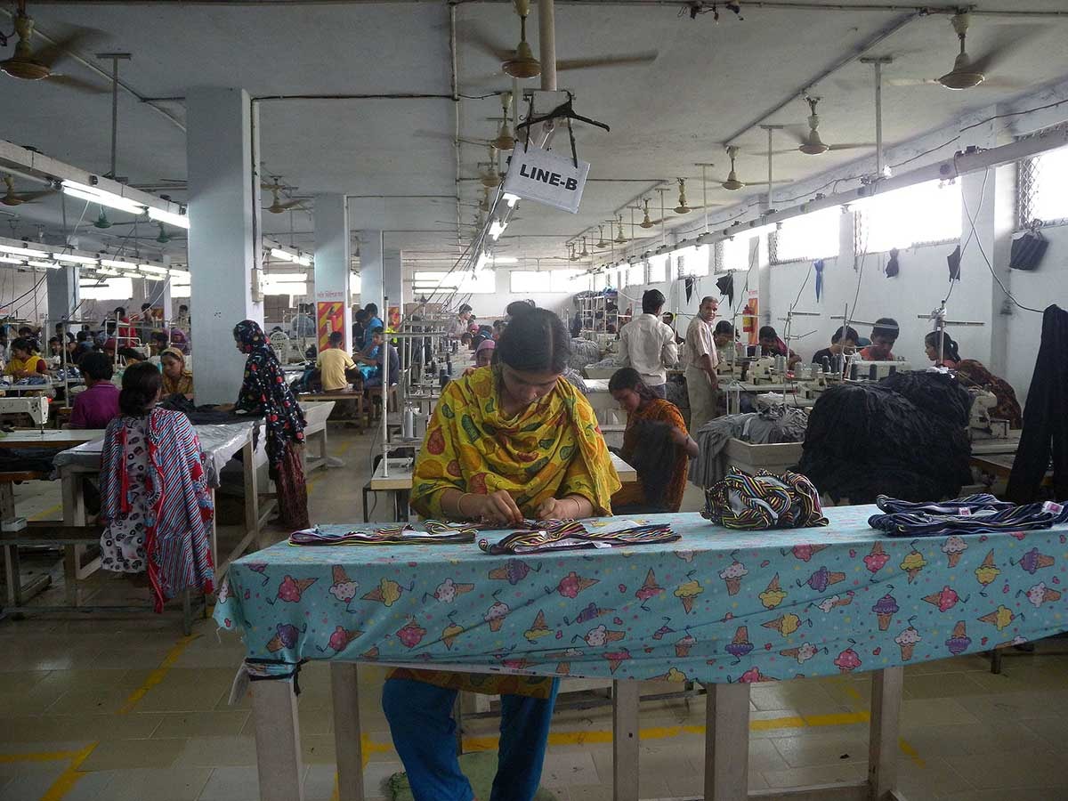 Photos : Boutique Forever 21, Briarwood Mall, Ann Arbor, MI Dwight Burdette; Helping Khaleda, l’une des survivantes de Rana Plaza (14008308964).jpg Département britannique pour le développement international, création le 2 avril 2014; Une usine de confection textile de vêtements / ligne d'assemblage au Bangladesh Tareq Salahuddin de Dhaka, Bangladesh, Wikimedia Commons