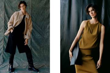 La collection automne-hiver 2020 de Cos fusionne des propriétés innovantes avec des techniques traditionnelles. Les looks clés sont mis en avant dans la campagne, dans des couleurs neutres atténuées de crème, de beige et de gris ton sur ton qui constituent la base de la saison, contrastant avec le bleu électrique et le vert pin.