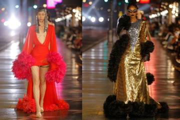 Pour ce retour en physique, après deux saisons présentées sur écran, Gucci a choisi de faire défiler ses modèles sur le célèbre trottoir Walk of Stars, au son des mélodies aériennes de Bjork et devant le légendaire Chinese Theatre, lieu qui accueille la cérémonie annuelle des Oscars. La collection est ponctuée de pièces fortes, dont plusieurs robes au volume extravagant, inspirées de tenues d’intérieur que l’on imagine aisément arborées par des actrices américaines durant l’âge d’or d’Hollywood. Le défilé a également laissé place à plusieurs tailleurs pantalons satinés, à des bas résille et à des pièces bordées de fausses fourrures pour accompagner des voiles transparents, dans un esprit radicalement glamour. Toutefois, la collection ne s’en tient pas à un hommage au vieux cinéma et propose des pièces aux imprimés ensoleillés et contemporains, réinventant même l’iconique chemise hawaïenne.