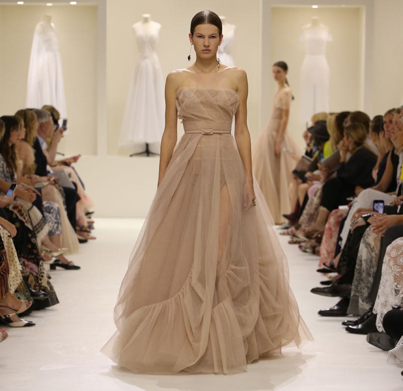 Une palette couleur chair, des broderies ton sur ton, des lignes épurées: "la haute couture n'a pas à être voyante", professe la directrice artistique de Dior, Maria Grazia Chiuri, qui veut faire passer le message à la génération Instagram.