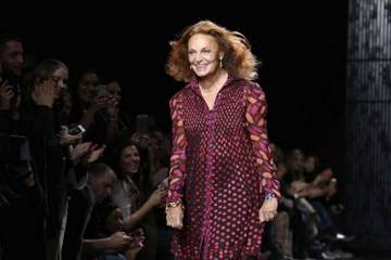 La robe portefeuille, qui a à jamais rendue célèbre DVF, était comme toujours déclinée en plusieurs versions, dont l'une, très longue et fleurie, et une autre dans un "tweed confetti" rebrodé de grosses fleurs. Et pour le soir, les robes étaient rouges et noires, avec force dentelles, transparences, dos nus et décolletés plongeants. Et certainement pas de quoi réchauffer les fashionistas transies, alors que New York grelottait par -22°C en température ressentie dimanche. La femme DVF de l'automne-hiver 2015 ne s'embarrasse pas de manteau, en robe légère ou tailleur pantalon masculin, avec seulement, dans toute la collection, un blouson court ivoire en agneau bouclé, une petite parka en renard bleu, et une autre très longue, avec une énorme capuche doublée de fourrure rouge. (AFP)