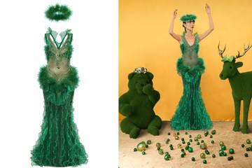 Ensemble Sapin (en photo), robe Mère Noël, combinaison boules de Noël, chapeau étoilé… Inspiré par l’iconographie culte de Noël, Le Printemps propose, via son site internet, 51 articles digitaux à petit prix (entre 3 et 12 euros).