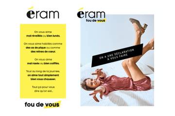 Avec la signature de sa nouvelle campagne, Eram fait un clin d'œil à ses origines. C’est à travers une signature historique « il faudrait être fou pour dépenser plus » que la marque a su se démarquer, en faisant de ces mots un slogan emblématique qui a traversé les années. Eram a eu envie de redessiner les contours de cette signature. La nouvelle signature se veut un lien entre l’historique de l’enseigne et sa nouvelle vision : « On sait comment vous êtes, (on est pareils !), Et c’est pour cela que nous sommes, Fou de vous ! »