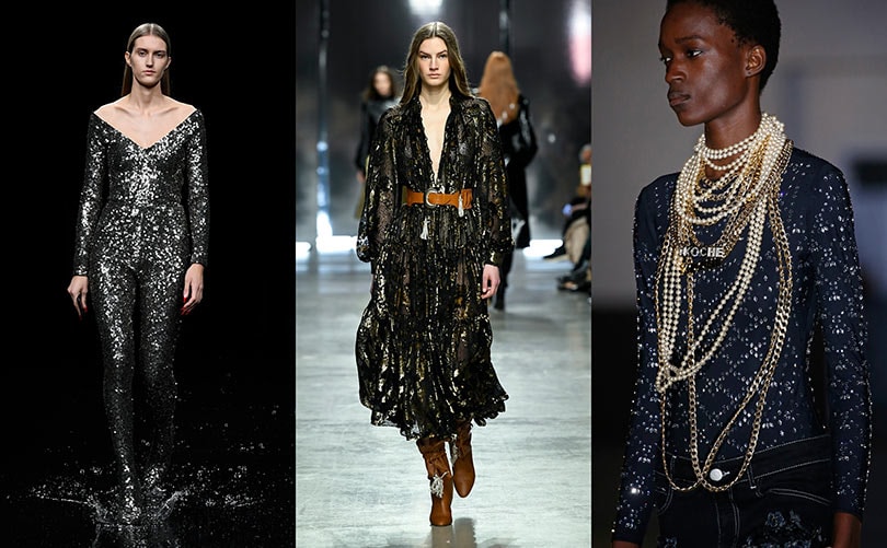 Le clinquant s’éloigne de son image vulgaire pour rehausser le stylisme de scintillements précieux et de bon goût. Strass, boutons bijoux ou fils de lurex, il s'exprime aussi bien en total look qu'en ponctuation vestimentaire.