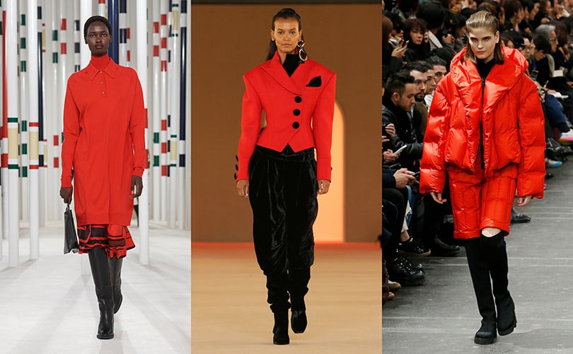 La teinte écarlate a coloré une grande partie des catwalks cette saison. De Hermès à Balmain, en passant par la plus jeune marque Koché, tous ont repris à l'unisson ce rouge saturé et vif sur des pièces outdoor, des tailleurs ou dans un esprit couture. La nuance, symbole de sensualité, de passion mais aussi de force, se porte en aplat davantage qu'en subtiles touches.