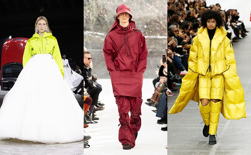 Le secteur de l'outdoor, depuis longtemps plébiscité à travers le succès de la doudoune, va prendre une place de plus en plus importante dans le vestiaire féminin comme masculin. Sur le podium de Off-White, le mannequin Bella Hadid a arboré une robe de tapis rouge dont la manche était faite en tissu technique d'Arc-Teryx, entreprise canadienne spécialisée dans les vêtements pour les sports de montagne. Matières techniques, détails de cordons de serrage, tenues pour les grands froids et colorama vif, l’outdoor s’exprime sous toutes les coutures.