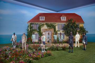 Cette maison rose, devenue musée de Christian Dior, avec son jardin surplombant l'océan, a défini la palette de la collection : le dégradé du gris du ciel changeant de la Normandie, vert eau, rose pâle. Des mannequins ont marché sur une colline fleurie reconstituée dans un bâtiment du Val-de-Grâce, l'ancien hôpital d'instruction des armées à Paris. Un paquet de graines de fleurs a été collé au carton d'invitation au défilé Dior, dans le cadre de la Fashion Week homme.