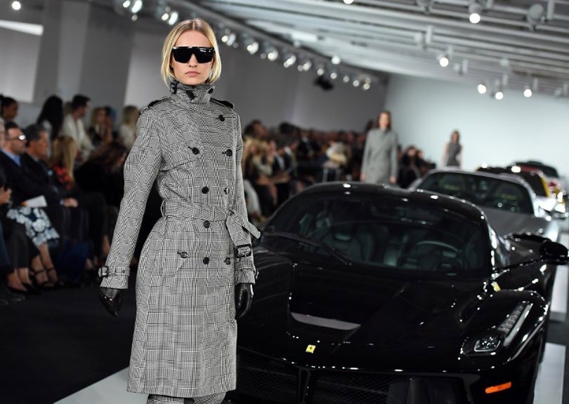 Pour créer l'événement, le créateur avait organisé le défilé dans le garage de sa prestigieuse propriété de Bedford, au nord de New York, au milieu de quelques-uns des plus beaux modèles de sa collection. Entre Aston Martin, Bugatti et Ferrari, des mannequins ont défilé devant un public trié sur le volet, qui comprenait notamment les actrices Diane Keaton, Jessica Chastain et Katie Holmes.