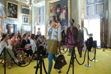 Alessandro Michele avait dévoilé sa nouvelle collection Croisière 2018, lors de son défilé, organisé dans la Galerie Palatine au Palais Pitti, à Florence. Le directeur artistique, arrivé en 2015, s’était inspiré de la Renaissance pour cette collection, avec des broderies et des ornements, agrémentée de nombreux détails. Le créateur continue d’explorer le thème de la flore et de la faune.