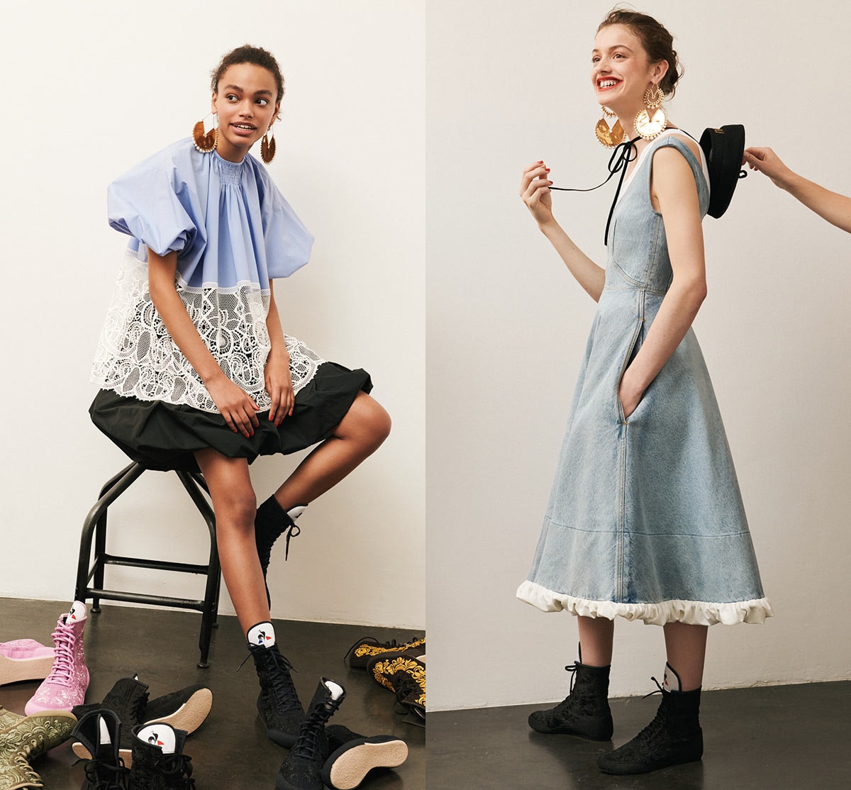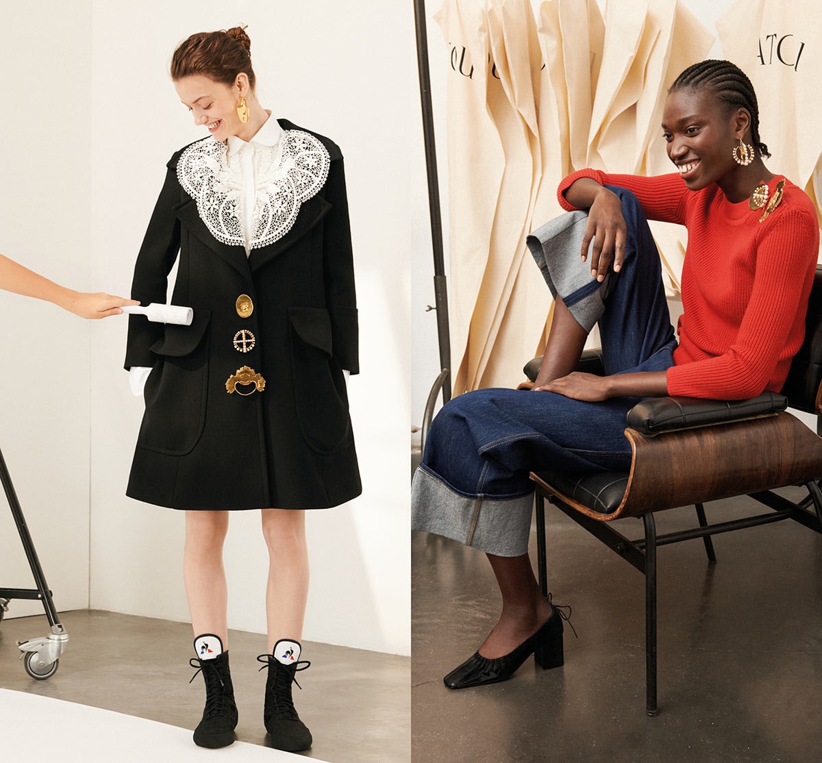 Son nouveau directeur artistique a livré une collection mutine au volume couture que les Millennials pourront facilement s'approprier. L'esprit est anti-conformiste et joyeux, le lookbook tout en sourires. Parmi les silhouettes, on retrouve pêle-mêle : des robes boules, des manches volantées, du rose poudré et du rose fushia, un col en dentelle façon coiffe de bigoudène, des pantalons denims et des tailleurs. Guillaume Henry twiste ainsi le vestiaire quotidien de détails fantaisies et féminins : un col lavallière exagérément long, des volants, des plumes, du volume et des coupes