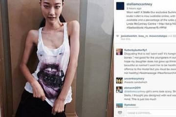 Crédit photo : un cliché publié par la styliste Stella McCartney sur son instagram, d’un mannequin portant une création de la saison printemps/été 2015. D’apres le Daily mail, un million de fans s’était désabonné du compte de la créatrice en signe de protestation suite à la parution de cette photo.