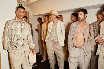 Les pantalons à plis et bermudas sont amples, à combiner avec des blazers avec revers et des maillots ou pulls à col rond qui remplacent des vestes et manteaux à la coupe droite. Le lin, c'est la "légèreté de vivre et de s'habiller", a commenté le directeur artistique de la marque, Alessandro Sartori.