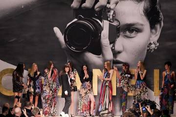Les premiers looks sont des maillots de bain, accessoirisés de ceintures bijoux et de sandales compensées, et ils donnent le ton de la collection. Pour la soirée, les maillots se portent avec une longue jupe transparente. Des imprimés vifs sur des robes longues fluides et paréos clôturent le défilé qui se déroule pour la première fois au Grand Palais Ephémère. Lieu traditionnel des défilés Chanel, le Grand palais est fermé pour travaux. Les tailleurs en tweed sont courts, de couleurs fraîches - rose, mauve et jaune.