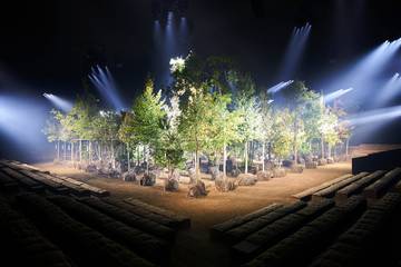 Conçu en collaboration avec l'atelier de paysage contemporain Coloco, le cadre du défilé est pensé comme un jardin peuplé de 160 arbres provenant de différentes pépinières de France, d'Allemagne et d'Italie qui seront ensuite replantés sur plusieurs espaces à Paris.