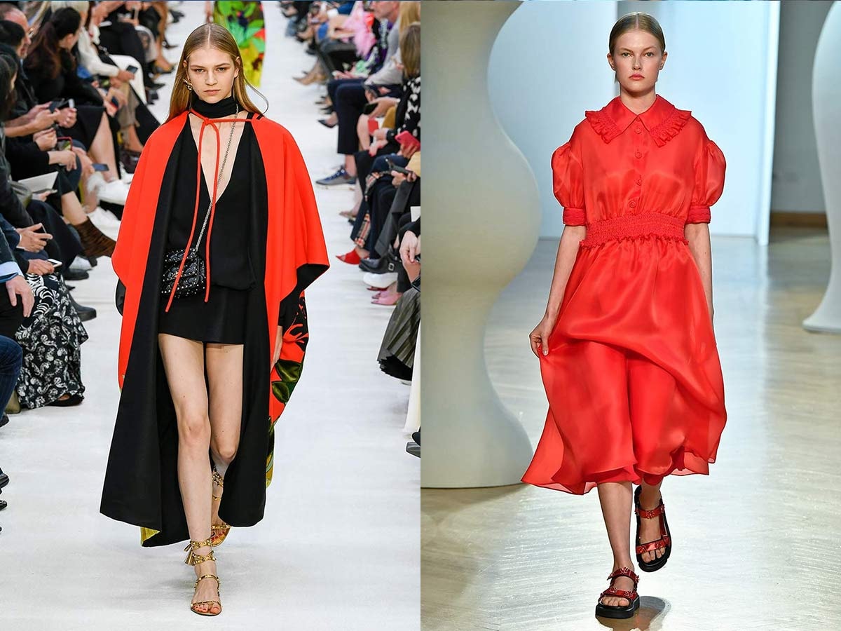 « Flame Scarlet respire la confiance et la détermination », déclare Pantone. La couleur rouge vif se retrouve chez Marine Serre, Elie Tahari, Marco de Vincenzo, Philosophie de Lorenzo Serafini, Boss, Vivetta, Valentino et Chromat.