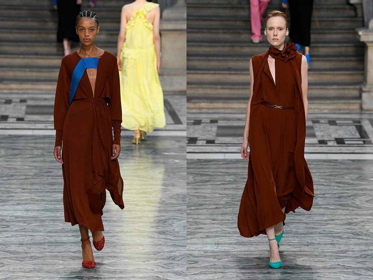 Photos : Roland Mouret (2x), Richard Malone en Salvatore Ferragamo PE20, Catwalkpictures.com