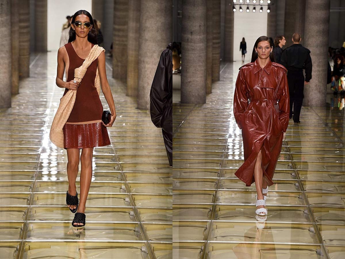 Victoria Beckham et Bottega Veneta ont présenté dans leurs collections estivales 2020 des nuances de bruns. Bottega Veneta, la maison de couture qui a acquis une grande popularité sous la direction créative de Daniel Lee, a, pour sa part, présenté un trench-coat en cuir et des robes en maille côtelées marron, associées à de nouvelles versions du sac en cuir tressé et des sandales à talons.