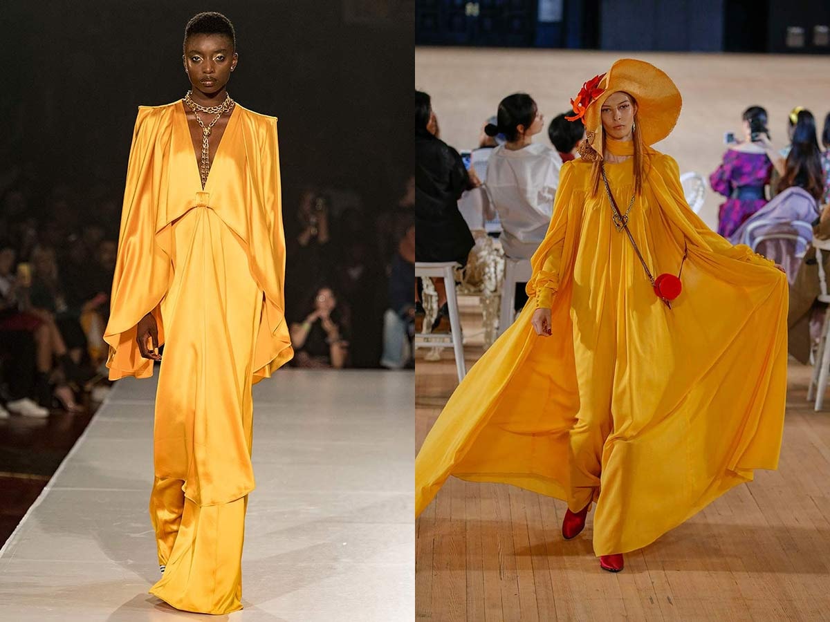 La teinte jaune safran a également été repérée chez Sally Lapointe, Pyer Moss, Brandon Maxwell, Christiano Siriano, Annakiki, Marc Jacobs, Bora Aksu, Tod's, Rejina Pyo et Supriya Lele.