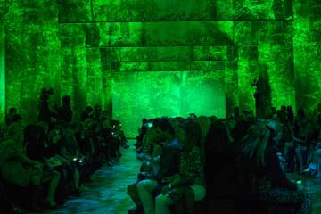 Le style militaire est reconfiguré d’une façon plus féminine. Les silhouettes sont organiques mais structurellement modernes, coupées à partir de fibres naturelles lestées pour une définition de forme forte. Des décolletés plongeants et des éléments asymétriques mettent en valeur une nouvelle attitude féminine à travers des tons de forêt encrée.