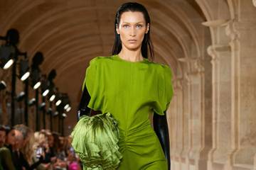 La collection respirait la féminité : la mannequin Bella Hadid portait une robe verte avec la taille soulignée, et de hauts gants noirs. Sa soeur Gigi était vêtue d'un tailleur pantalon noir... L'ex-Spice Girl n'est pas venue saluer les invités comme le veut l'usage après le défilé qui s'est déroulé au Val-de-Grâce, ancienne abbaye et hôpital militaire devenue musée.