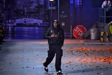 En guise d'invitation pour cet impressionnant défilé-performance avec de la musique live dans le jardin des Tuileries, le designer de 38 ans, premier afro-américain à diriger la création d'une grande maison de luxe française, a envoyé un gant, accessoire signature de Louis Vuitton, couvert de cristaux comme ceux du chanteur pop.