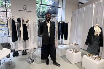 C’est le cas de Adeju Thompson, pour Lagos Space Programme, vainqueur du prix international Woolmark 2023, qui expose pour la première fois. Sa collection est un mixte culturel entre matières précieuses, sourcées au Japon, et imprimés réalisés au Nigeria, pays dont il est originaire. Sa capacité à réunir un savoir-faire artisanal et des silhouettes fluides contemporaines saura-t-elle séduire les acheteurs ? Ou bien seront-ils convaincus par cette dominante bleu, couleur phare de la saison printemps été 2024 ?