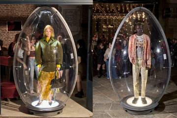 C’est peut-être ce dernier facteur qui a poussé Glenn Martens à organiser le défilé printemps-été 2026 de Diesel dans les rues de Milan. La marque a disséminé des modèles de sa collection dans des œufs transparents répartis dans divers lieux publics. De fait, le public était au premier rang, rompant avec le traditionnel front row réservé au VIP.