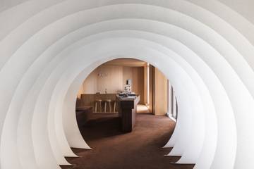 La scénographie, inspirée de l’objet longue-vue, est une expérience immersive qui permet de feuilleter le magazine ou d’écouter la lecture d’un chapitre.