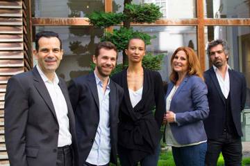 Photos : L’équipe des 5 experts de l’Espace Retail Expert Club du salon et un portrait de Thierry Bayle.