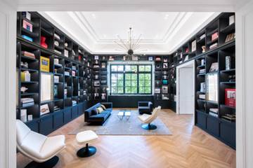 Dans le detail, « Aristide », baptisée du prénom de M. Boucicaut, est une vaste pièce circulaire. Réhabilitée dans les règles de l’art par des Compagnons, elle conserve, intacte, toute son authenticité. Entièrement lambrissée d’acajou, surmontée de motifs années 30 dorés à la feuille, elle est éclairée de luminaires d’époque en verre gravé et en albâtre. La « Bibliothèque » recèle plus de 800 exemplaires du roman Au Bonheur des Dames. Émile Zola qui avait publié ce récit en 1883, s’était ostensiblement inspiré du Bon Marché pour décrire cette histoire qui chantait les louanges du nouveau commerce. Cette édition spéciale, réalisée exclusivement pour le magasin et éditée par Gallimard, est illustrée par l’artiste et designer graphique Vahram Muratyan. Le « Grand Salon », largement ouvert sur les arbres, mêle couleurs douces et lignes courbes avec un canapé Curvato des années 50 tapissé de rose tendre, une coiffeuse années 30 de Jacques Adnet, de multiples miroirs cernés de laiton. L’ambiance y est clairement féminine.