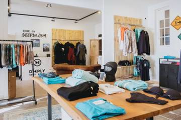 A Hossegor, le magasin Deeply se situe sur la place des Landais, à deux pas des plages de la Graviere et des Landais. Animé, ce quartier constitue une destination privilégiée pour le shopping. D'une superficie de 60 mètres carrés, la décoration de la boutique s'inspire des cabanes de surf en bois et met en avant les produits techniques de la marque : combinaisons, maillots de bains… mais également l’ensemble de la première collection lifestyle pour homme et femme.