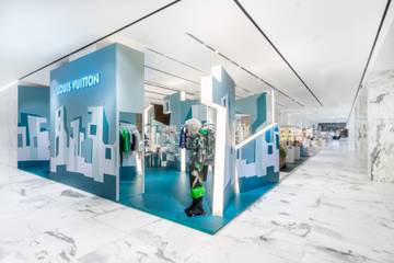 Le décor de la boutique éphémère, en réponse à la scénographie du défilé Louis Vuitton, mise sur des formes géométriques dans des nuances de bleu et blanc. Il s’inscrit dans l’ADN de la collection AH23 qui « explore l'âme d’enfant qui résident en chacun de nous », déclare Louis Vuitton dans un communiqué.