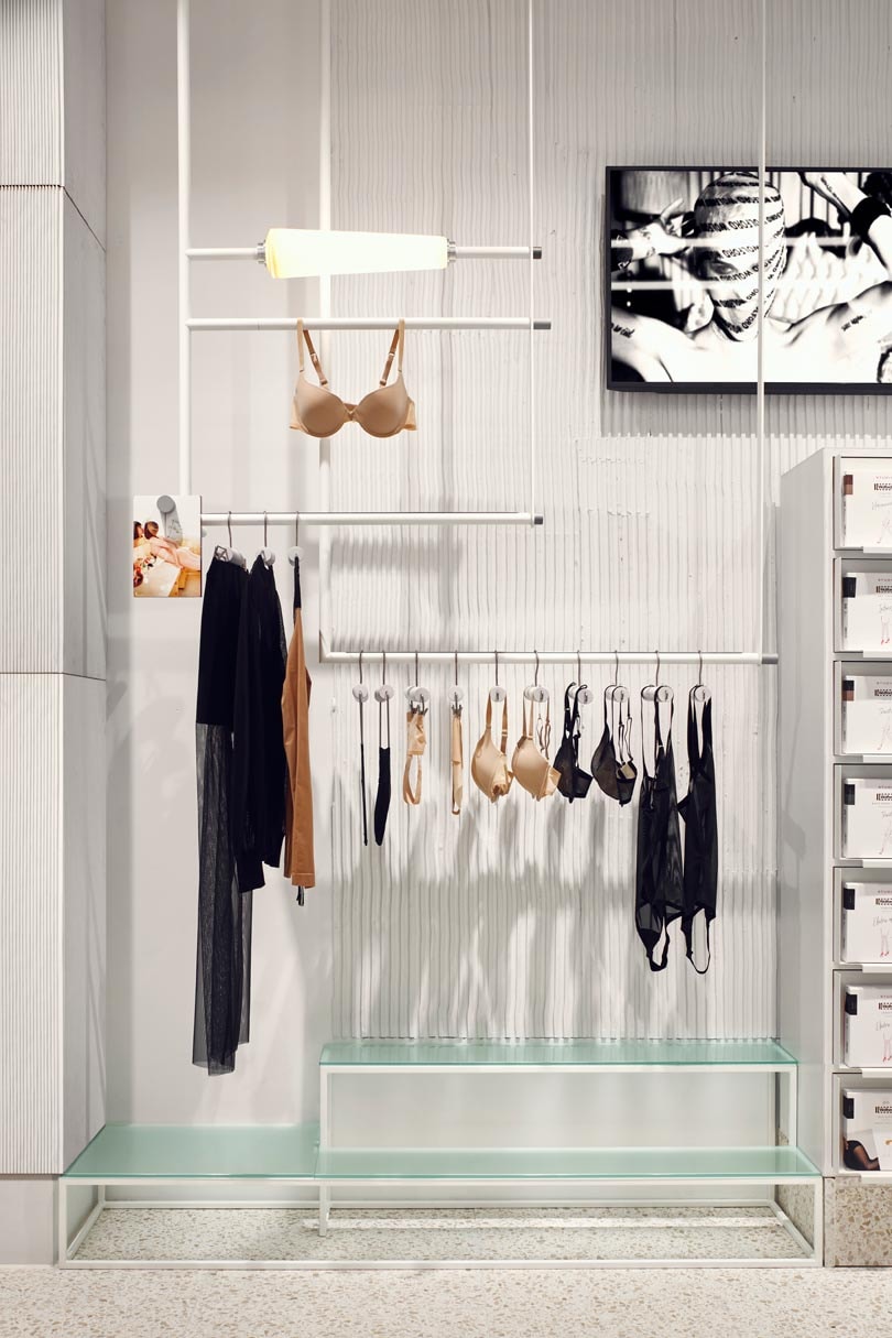 Le studio de design néerlandais Studio Modijefsky est à l’origine du design de la boutique et n'avait aucune expérience dans le commerce de détail. Il s’agit d’ailleurs de l’une des raisons pour lesquelles Wolford l’a choisi. Le magasin dévoile de nombreuses nouveautés. Outre la disparition des mannequins, c’est aussi la première fois que la marque se lance dans le cross category. "Nous le faisons pour montrer comment vous pouvez combiner les produits. Il s'agit d'une nouvelle façon de faire les magasins et de donner un aspect plus “boutique”. Cela permet aux gens de découvrir quelque chose de nouveau à chaque fois.”