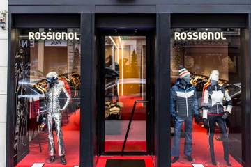 Sur une surface d’environ 70 mètres carrés, le pop-up store, dont les couleurs dominantes rendent hommage au drapeau français (bleu-blanc-rouge), est divisé en deux pôles. Le premier offre une sélection précise de toute la gamme de produits avec entre autres les vêtements de ski et un espace dédié aux chaussures (une catégorie qui connaît un succès commercial majeur). Le deuxième pôle est consacré à la collection JC de Castelbajac X Rossignol.