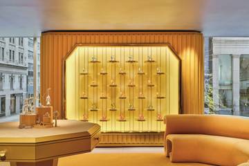 Dans un espace de 14 400 pieds carrés (environ 1334 mètres carrés), la boutique propose aux clients de la marque de découvrir ses collections signatures, ses bijoux en cristal, ses lunettes ainsi que ses collaborations. Le flagship a été imaginé par Giovanna Engelbert, directrice de la création chez Swarovski. Conçue comme une véritable « boîte à bijoux », la boutique reprend les codes signatures du célèbre joaillier tels que l’octogone qui est présent sur les vitrines, les murs, les cabines d’essayage ou encore les poignées des portes.