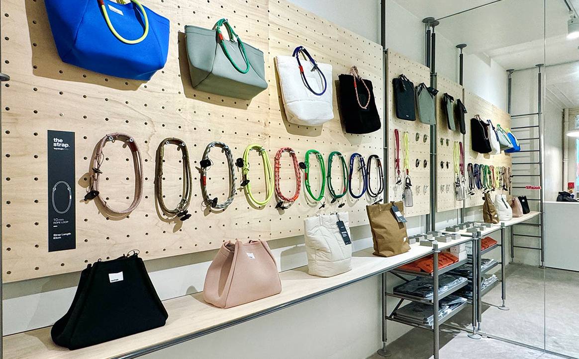 Topologie propose plus de cent sangles interchangeables, inspirées de cordes et de matériel d'escalade authentiques, complétées par des sacs et des coques pour téléphone. Dans le flagship parisien, les clients peuvent laisser libre cours à leur créativité et co-créer leurs accessoires de transport uniques à partir d'un éventail comprenant plus de mille combinaisons différentes.