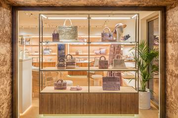 La boutique expose les incontournables de la maison et met l’accent sur la maroquinerie. Sont ainsi présentés les sacs Lady D-Lite, Dior Book Tote, Diorcamp. L’espace propose également une série d’accessoires tels que des foulards et bobs, des chaussures dont les mules Dway ou encore des vêtements d’été comme des ponchos et tops marinières signés Dior.
