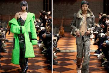 Cette collection brise la barrière de classe sociale en combinant des pièces de haute couture et de la rue, tout en conservant la forte contradiction et l’antagonisme de ces différents styles. Les costumes à épaules carrées représentent l’émancipation de la jeunesse contemporaine qui refuse l'assimilation. Les plis fluctuants continuent d’explorer les tissus, exprimant des émotions déferlantes de manière destructive et abstraite en couches et torsions. Les graffitis de l'art de la rue et les effets de blanchiment d'un style décontracté et brut sur l'ensemble des sweats à capuche soulignent l'esprit de rébellion contre les normes sociales dominantes. La juxtaposition de trous, de clous et de tulles offre un contraste saisissant de perplexité, de brutalité et de poésie. Ces détails expriment l’opposition entre un raffinement haut de gamme et un désordre chaotique, constituant une contradiction à double sens de résistance et de désir.