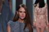 Habituée des nuits sans fin, la femme Elie Saab s'inscrit dans un univers où glamour et élégance. Petites pochettes en croco gold ou daim camel striées de lignes vernies greige s’accordent avec de fluides robes en jersey rose thé. Les silhouettes sont allongés par de hautes sandales ouvertes impeccablement coordonnées, ici, une minaudière en daim saumon surlignée de métal, là, de micro sacs-bijoux parés d’émaux et cristaux, ou texturés d’un entrelacs de cuir ton sur ton gris galet. Plus raffinés, des sacs en daim nude ou croco vert-olive piqués de fermoirs graphiques renvoyaient des flashs de lumière. Vous l'avez compris, la maison de mode joue gros sur l'accessoire.